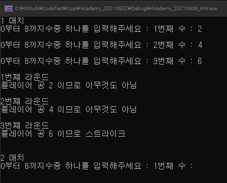 cout << "3 스트라이크 게임오버 아웃~~~~~" << endl;