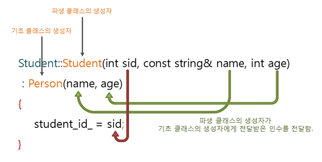 이때 기존에 정의되어 있던 클래스를 기초 클래스(base class) 또는 부모 클래스(parent class), 상위 클래스(super class)라고도합니다.